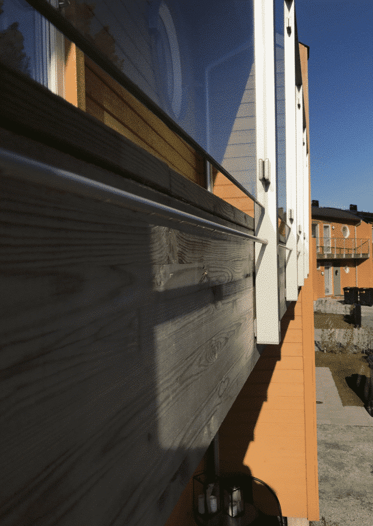 Möchten Sie einen besseren Windschutz für ein Holzgeländer haben, ist es oftmals möglich, vorhandene Andreaskreuze zu belassen und die Scheiben davor oder dahinter zu montieren.
